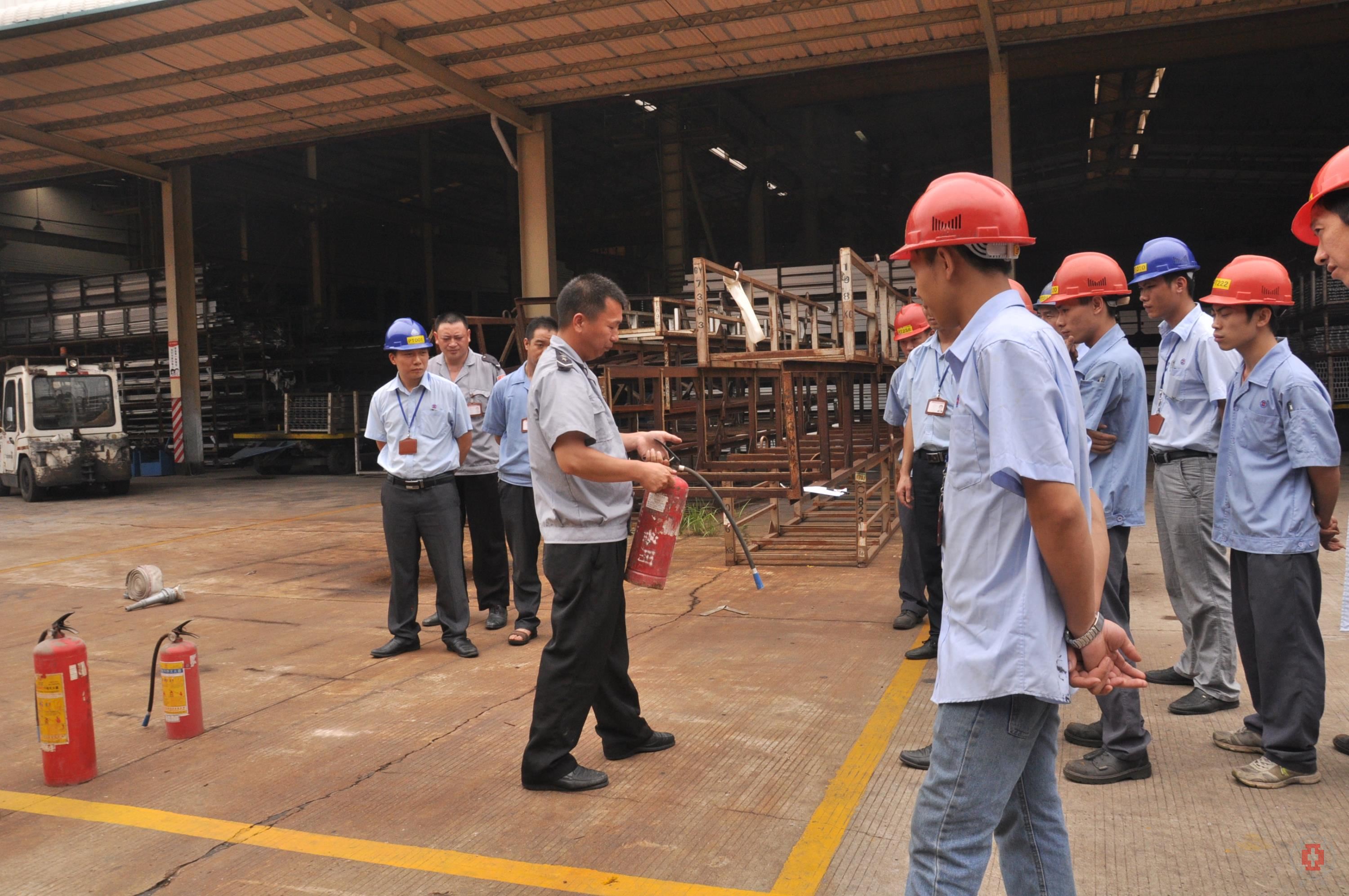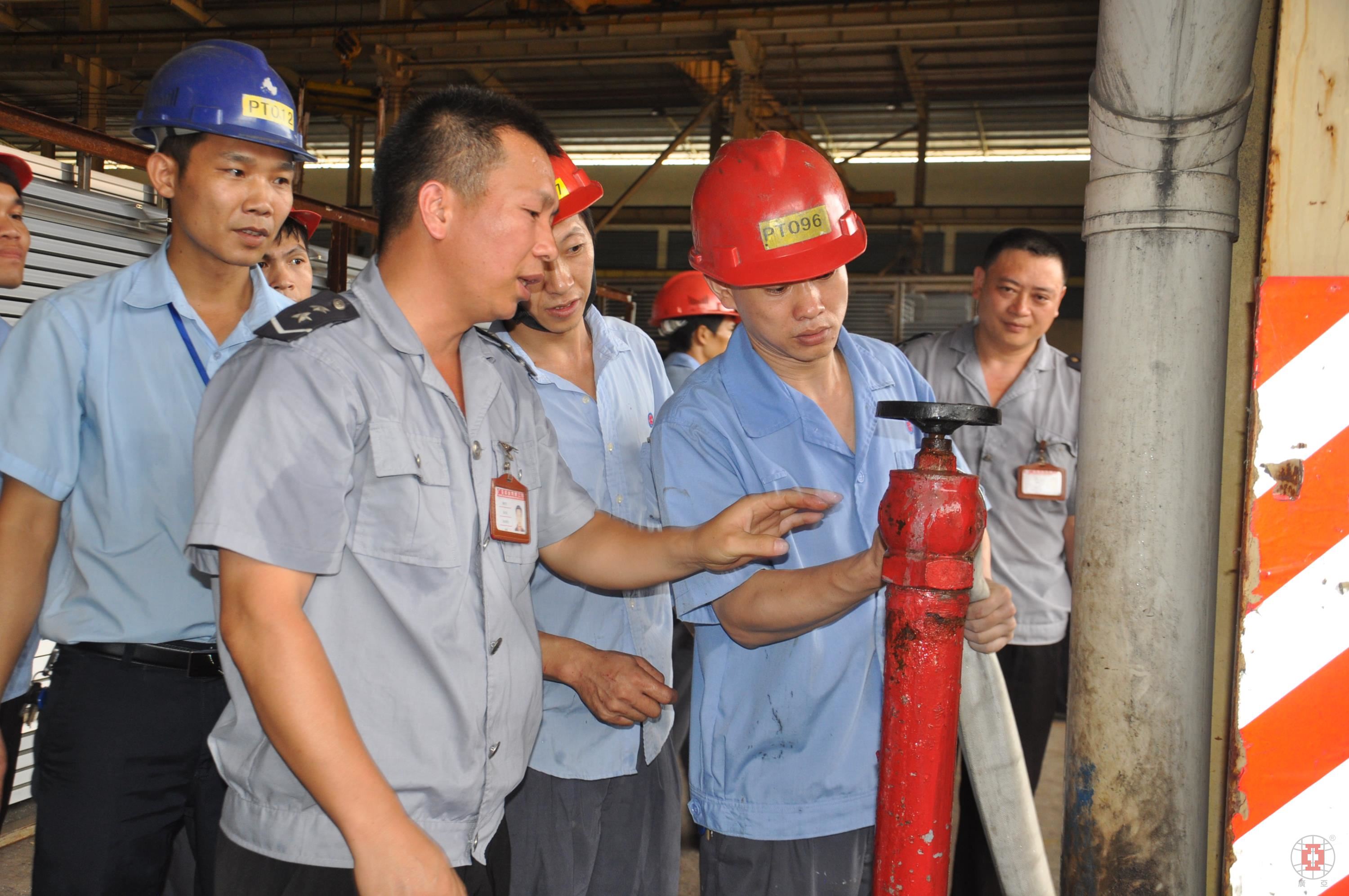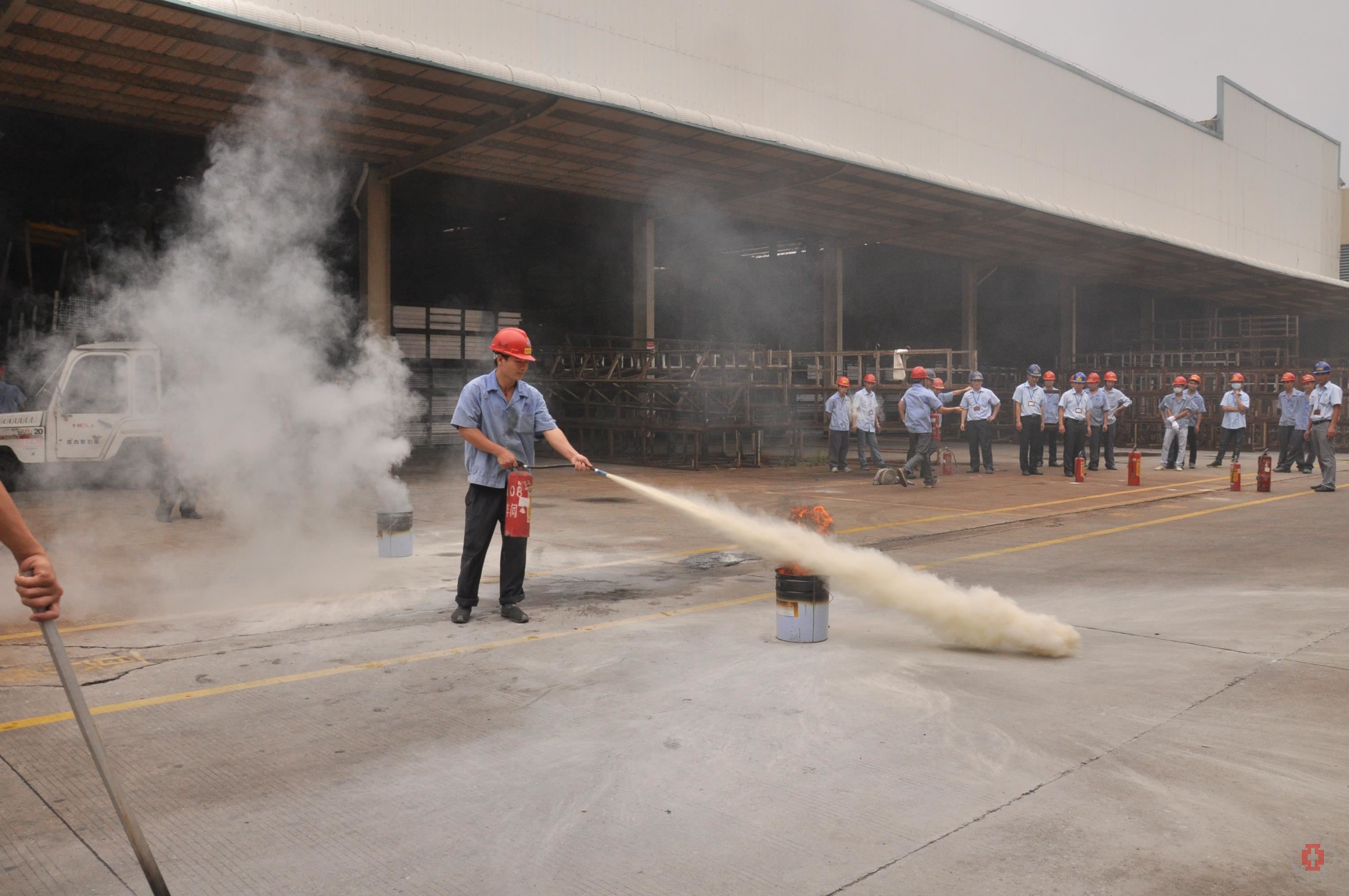 下午三點(diǎn)正,演練活動(dòng)正式開(kāi)始,噴涂車間20名員工代表迅速集中到E線后方的空地,隨后,噴涂車間文堅(jiān)全主任做動(dòng)員發(fā)言,向參與人員簡(jiǎn)要介紹了消防安全知識(shí)。接著,由保安隊(duì)班長(zhǎng)陶世軍負(fù)責(zé)講解滅火器和消防栓的使用原理及相關(guān)注意事項(xiàng),保安隊(duì)員譚龍等人示范了滅火器和消防水槍的使用方法,并指導(dǎo)參與人員進(jìn)行模擬滅火演練。