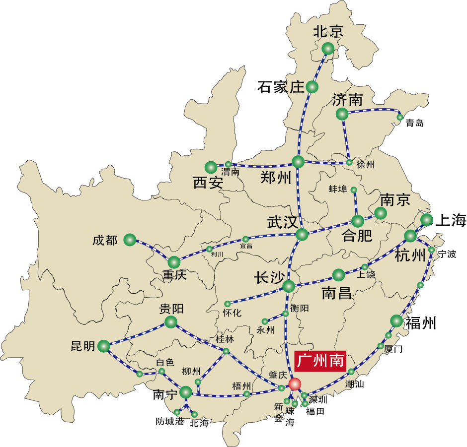 廣州南站,東接廣莞惠城際、西連貴廣高鐵、南連廣深港高鐵、北接京廣高鐵,是全國最大的高鐵客運(yùn)站。